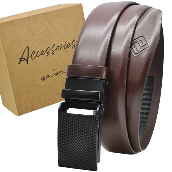 Pasek Męski PROMESSO Skórzany Automat CIEMNY BRĄZ Elegancki Prezent+Pudełko BRC64