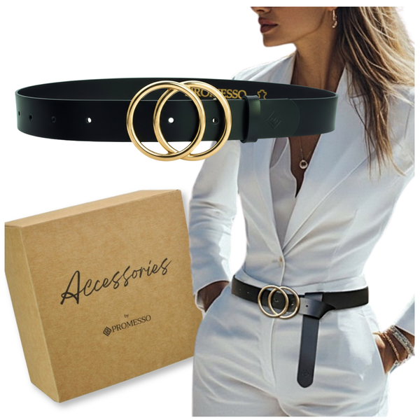 Stylowy Pasek Damski Skóra naturalna ZŁOTA KLAMRA + pudełko ECO