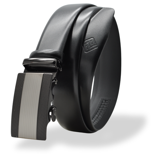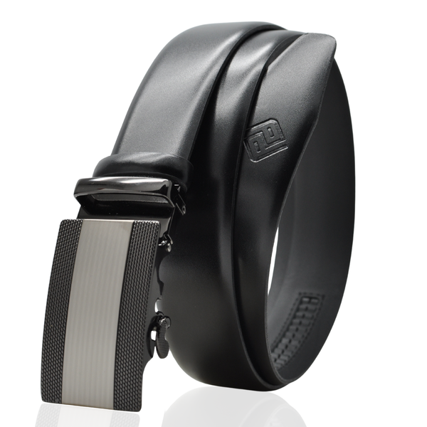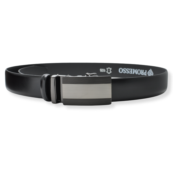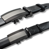 Elegancki zestaw skórzany: czarny pasek z automatyczną klamrą oraz duży funkcjonalny portfel.