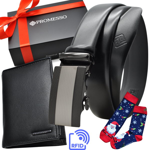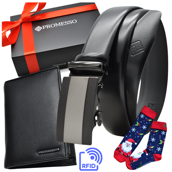 Zestaw ZE SKÓRY PASEK AUTOMAT I PORTFEL PREZENT NA ŚWIĘTA ELEGANCKIE PUDEŁKO SKARPETY 2061